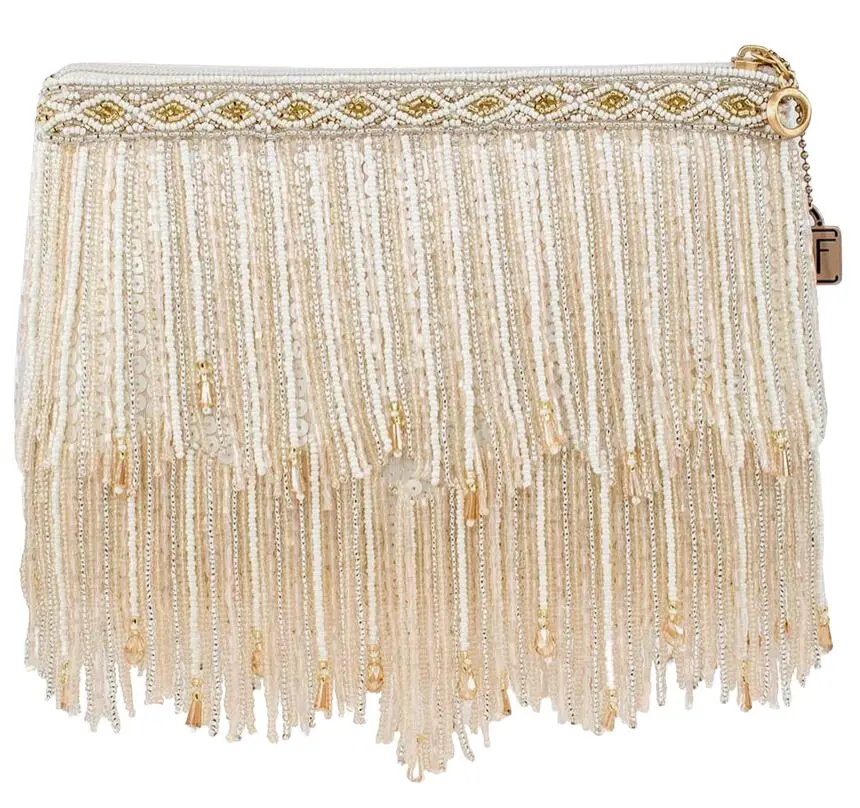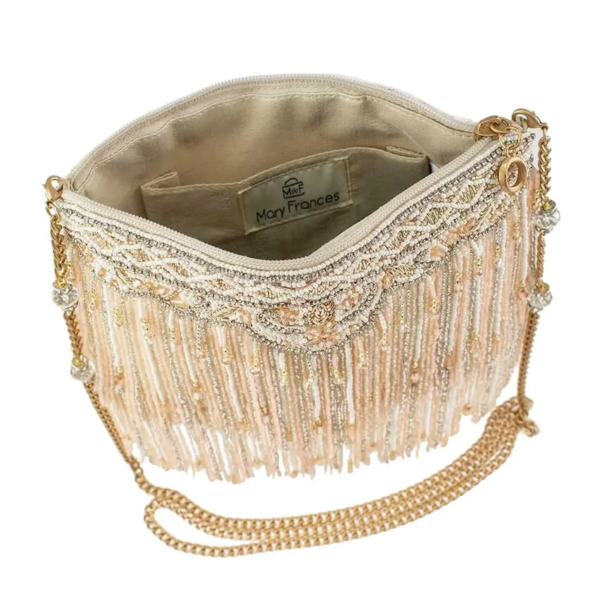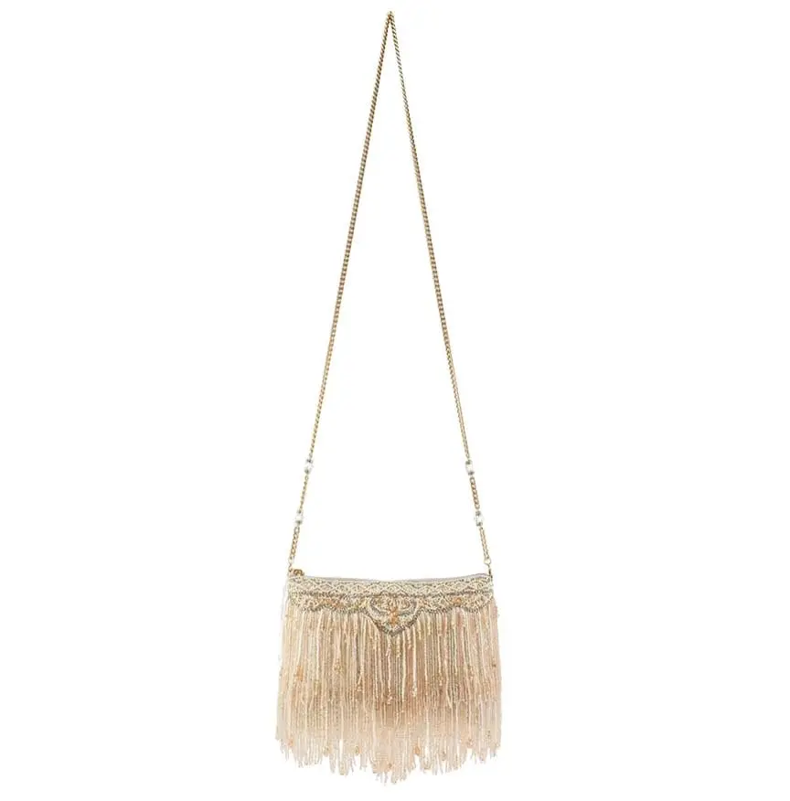 Layers of beaded fringe, sequins and faceted crystals create a beautiful Beaded Crossbody Handbag ‘Sugar Coated’ to walk down the aisle.