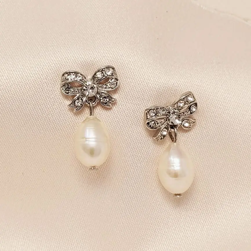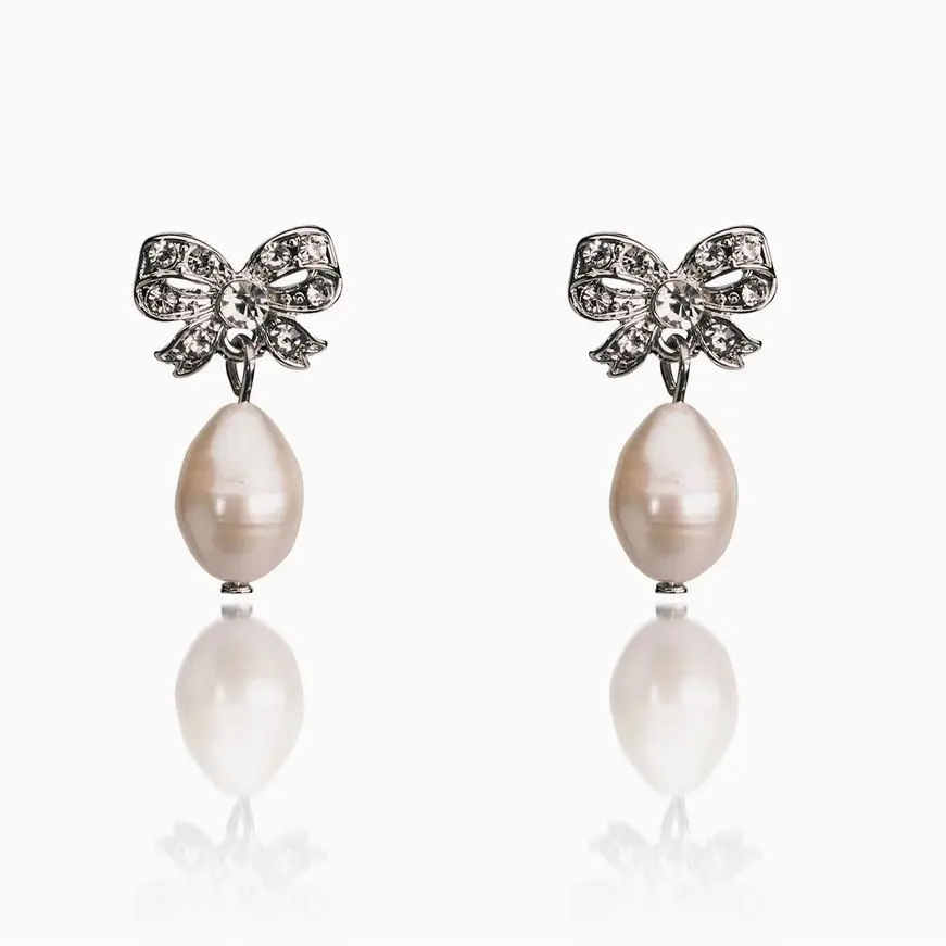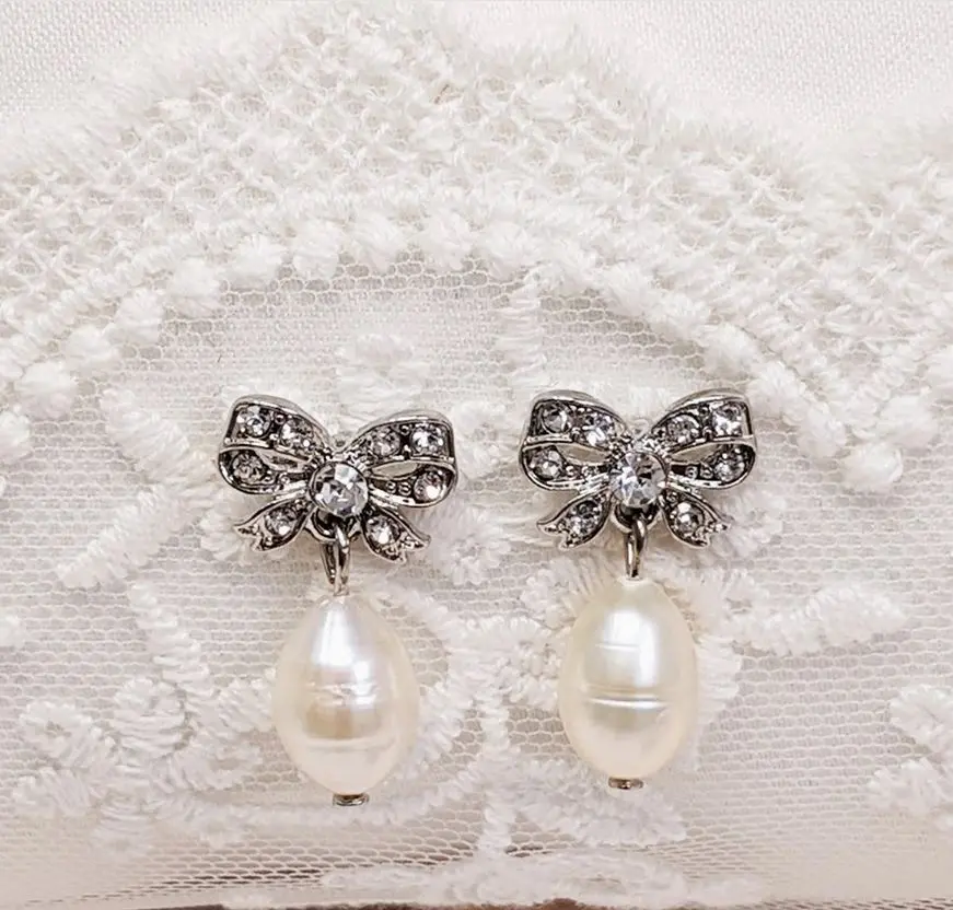 Crafted with exquisite detail, these bridal vintage inspired freshwater pearl bow earrings are sure to lend a hint of elegance and charm to any look.