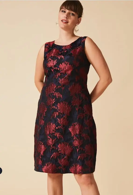 Multicoloured Greta Jacquard Dress Size 20 by Studio 8 Phase Eight. Colours are red, black and dark blue. A gorgeous dress to wear for any occassion.
