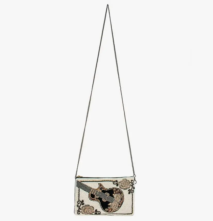 Beaded Crossbody Phone Bag Guitar Player by Mary Frances. Guitar Player is the perfect accessory for any rocker girl! Can also be worn as a crossbody handbag.