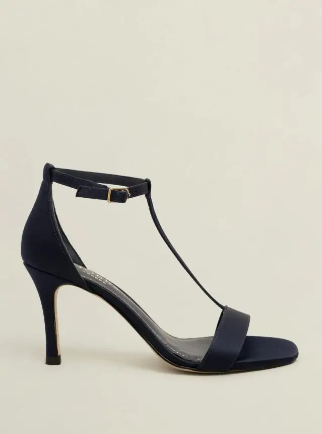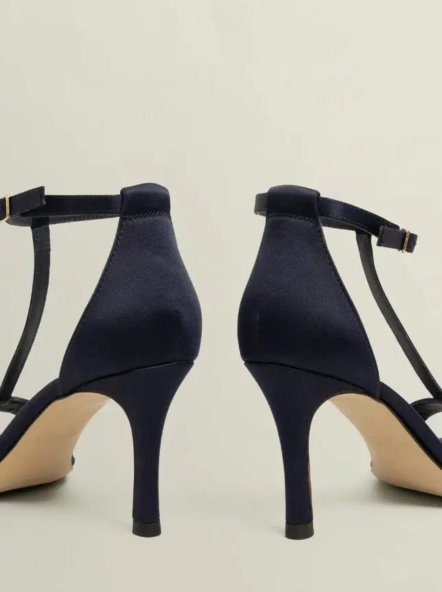 The Nadia T-Bar Satin midnight high heel sandals are not only stylish, but comfortable due to cushioned insoles and suitable for whole day wear.